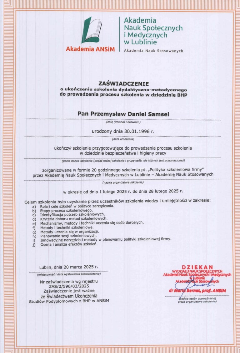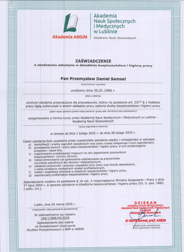 Certyfikaty potwierdzające moje umiejętności i doświadczenie zawodowe.
